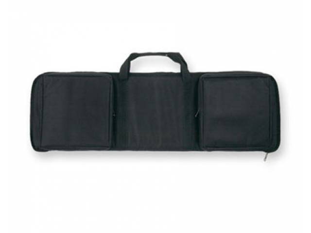 Funda para arma larga con mira de 54" - 137cms. color negro con porta accesorios correa y asas de transporte. Reforzada, Carcasa exterior súper resistente. Repelente al agua de 600 deniers.