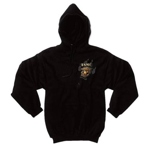 U.S MARINE CORPS. Sudadera con capucha color negro con Imagen en Ambos Lados.