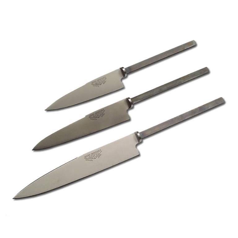 Hojas para encabar de acero INOXIDABLE con gavilán en la propia hoja. Hoja y espiga cortadas en una pieza ÚNICA.