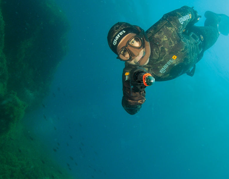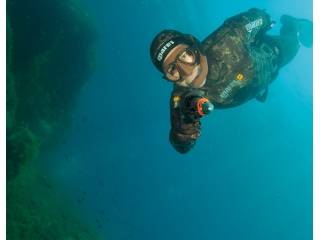 Cuchillo ultracompacto de buceo, con una longitud total de 140mm. Hoja de acero inoxidable 420A de 4 MM, tratada con PVD. Longitud de hoja de 60 mm. Filo cortante y otro aserrado. microdentado. Empuñadura ergonómica con orificio para desenganchar puntas de flecha de las rocas....