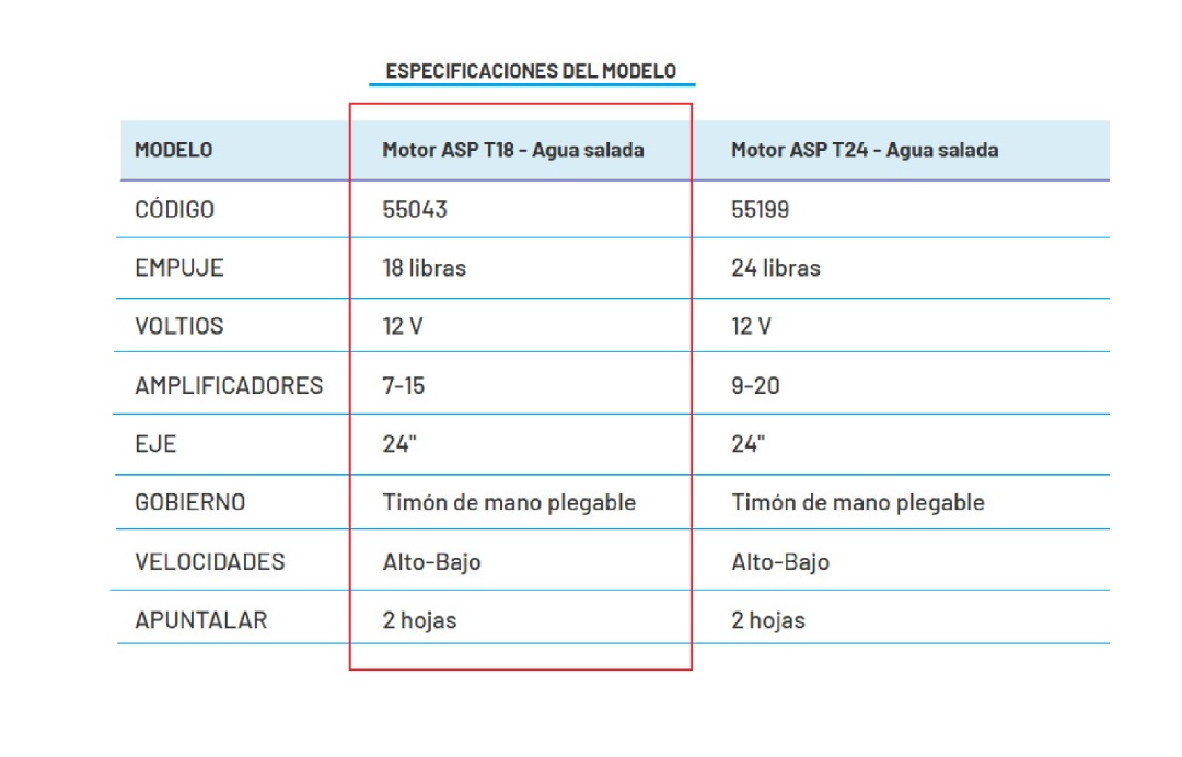 Motor fuera de borda eléctrico modelo ASP de 24 Lbs. Diseño para Agua Salada Empuje 24 Lbs