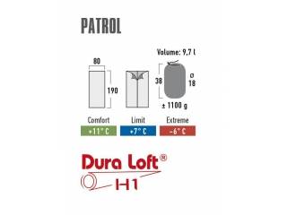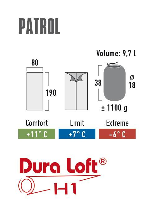 # 20048 - HIGH PEAK El saco de dormir Partrol de 190x80 cm con interior verde y exterior color grafito tiene cremallera en una propuesta universal tanto para un campamento de varias semanas como para un campamento de fin de semana. El saco de dormir también se puede utilizar como colcha en casa. Gracias a su peso ligero y fácil plegado, el saco de dormir es fácil de transportar. La elección perfecta para verano, finales de primavera y principios de otoño. La capa exterior ha sido impregnada con la tecnología Bionic-Finish Eco (tecnología hidrofóbica ecológica, resistente a la suciedad y al daño mecánico). El interior del saco de dormir es agradable al tacto. El relleno Dura Loft H1, a su vez, tiene altas propiedades aislantes y secantes. Se pueden cerrar dos sacos de dormir idénticos con cremalleras opuestas y utilizarlos como saco de dormir doble. La altura máxima del usuario es de 180 cm. Una funda en forma de bolsa de compresión en el conjunto. 100% PFCs FREE - UNA COLECCIÓN SIN TÓXICOS