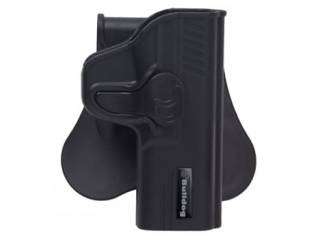 # RR92F - BullDog Cases USA Canana EXTREME en polímero negro con seguro anti extracción para pistolas BERETTA, TAURUS 92 de paleta rotativa regulable. - Solo mano derecha - Mecanismo de bloqueo de seguridad de "extracción rápida" especialmente diseñado - La paleta incluye un forro de silicona "c...