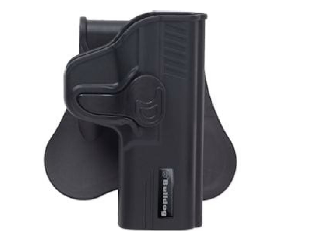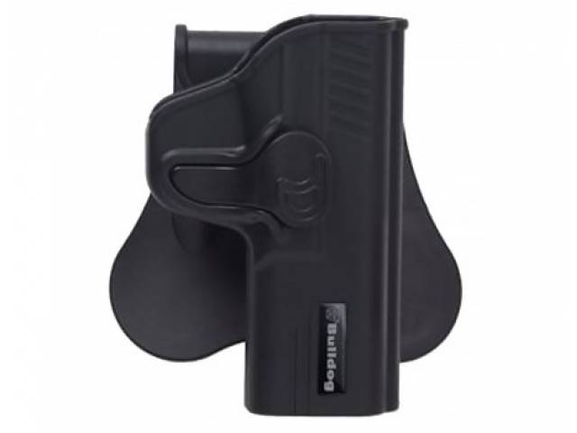 Las cananas BullDog de liberación rápida son hechas de polímero de alto impato de reciente tecnología. El diseño específico para pistolas es totalmente ajustable a múltibles posiciones en cuanto a la rotación de la misma para mejor comodidad del ususario. El mecanismo de bloqueo anti extracción es especialmente diseñado para usuarios combatientes. Proporciona una retencion segura de Nivel II, ofreciendo un desenfunde rápido con un solo dedo.